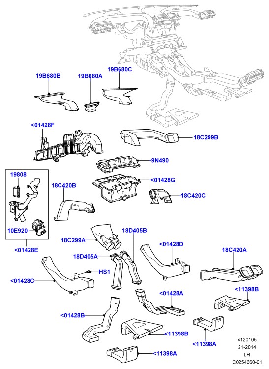 - Воздуховод; левый руль