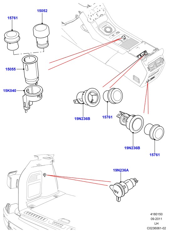- Гнездо прикуривателя Discovery 3 / Freelander 2 / RR Sport / RR Sport от 2010 / RR Evoque
