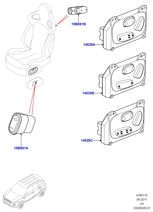 - Выключатель, левая сторона, passenger; правый руль, эл/прив.пояснич.опоры водит.и пасс. сиденья с электроприводом и памятью с 6-позиционным электроприводом пассажирского сиденья