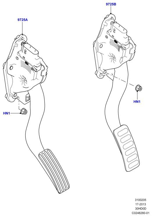 - Педаль акселератора в сборе; l405 range rover, левый руль, стандартн. конструкция ножн.педалей
