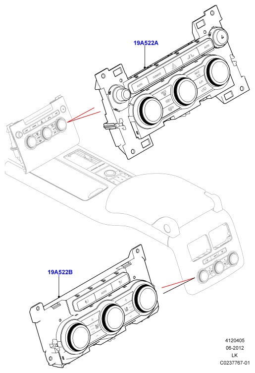 - Орган управления отопителем задняя консоль; с обогревом сидений - передн./задн. обогр./охл. передн. - обогр.задн.