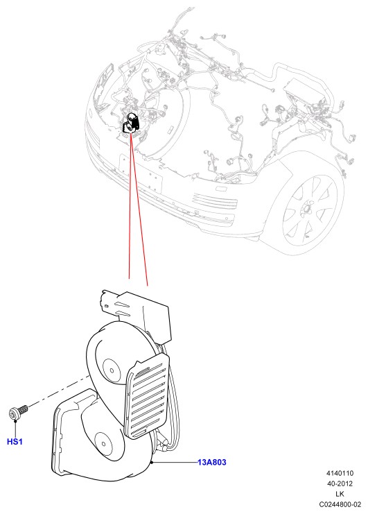 - Звуковой сигнал в сборе с кронштейном; двойной электрический звуковой сигнал - 2-й уровень