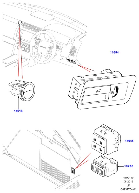 - Выключатель находится внутри багажного отделения; с задн.сид.60/40 с эл/прив.складыв.