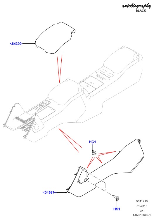 - Панель консоли боковой отделки, правая сторона; контрастная панель приборов -ebony/lunar с кожаным материалом консоли