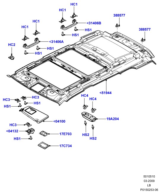- Обшивка потолка; левый руль, '(+)"cdn/mex/usa"' солнцезащ.козырек без подсв.-водит. солнцезащ.козырек без подсв.-пассаж без люка крыши с периметр. противоуг.сигн.