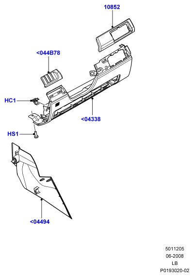- Нижняя секция панели приборов низкая серия без проема для панели отделки; левый руль, контрастная панель приборов - ebony black кнтрстн.пнл.приб.-reef/ebony black