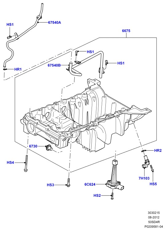 МАСЛЯНЫЙ КАРТЕР, УКАЗАТЕЛЬ УРОВНЯ МАСЛА 5.0L OHC SGDI NA V8 БЕНЗИН