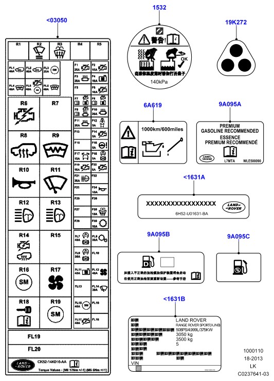 - Идентификационный ярлык автомобиля; удлиненный универсал 5.0l supercharged v8 aj133 сертификационный ярлык - тип 6 с раздельн.задн.сиден.40/40