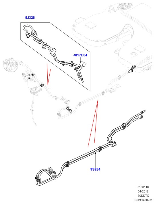 Топливопровод feed комплект из 3 шт. от топливного охладителя к топливному фильтру возврат передний; l494 range rover sport