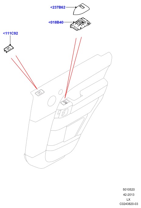 - Отделка переключателя на двери, левая сторона; компл.для салона techweavealuminium элприв.рег.прдн.сид.водит./пасс. мех.регул.передн.сид.водит. и пасс.