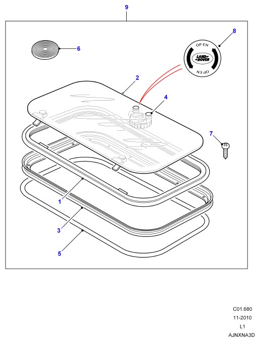 - Рама отверстия люка крыши верхний включает сальник