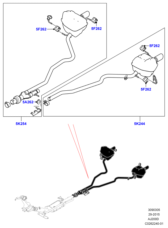 309-03/05F СИСТЕМА ВЫПУСКА, 2.0 SINGLE TURBO DIESEL (2,0 Л I4 DSL MID DOHC AJ200, С 7-МЕСТНОЙ КОНФИГУРАЦИЕЙ, С 18" СТАЛЬНЫМ ЗАПАСНЫМ КОЛЕСОМ) (С (V)GH000001 )