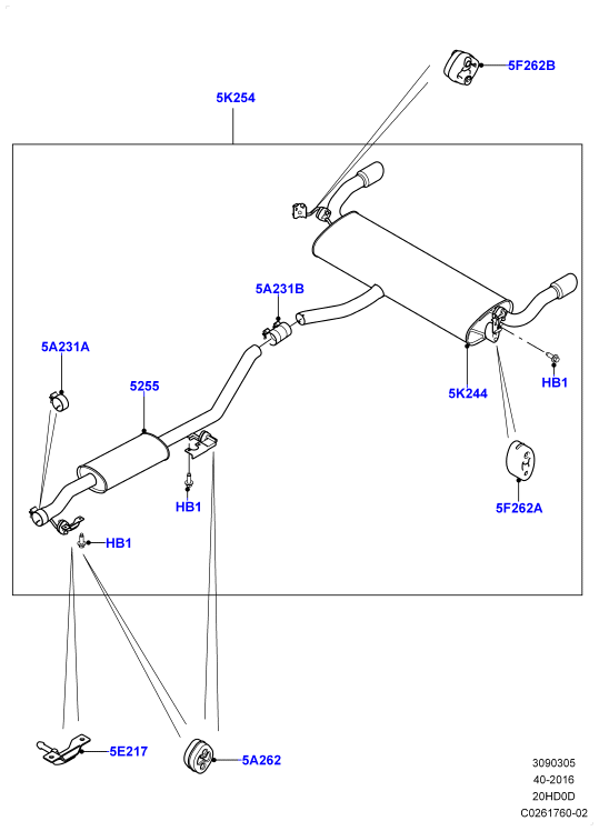 309-03/05W СИСТЕМА ВЫПУСКА, 2.0 16 КЛАП., ТУРБОНАДДУВ, БЕНЗИН, ЗАДНЯЯ СЕКЦИЯ (2.0L 16V TIVCT T/C 240PS PETROL, ИЗГОТОВИТЕЛЬ - CHANGSU (КИТАЙ), С 5-МЕСТНОЙ КОНФИГУРАЦИЕЙ) (С (V)FG000001 )