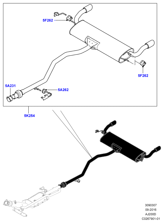 309-03/07D ЗАДНЯЯ СИСТЕМА ВЫПУСКА, 2.0 SINGLE TURBO DIESEL (2,0 Л I4 DSL MID DOHC AJ200, С 7-МЕСТНОЙ КОНФИГУРАЦИЕЙ, БЕЗ ЗАПАСНОГО КОЛЕСА)