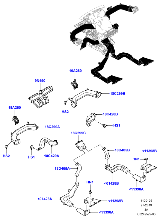 412-01/05B ВОЗД.ДЕФЛЕКТ., ЖАЛЮЗИ И ВОЗДУХОВОДЫ, ВНУТРЕННИЕ ЭЛЕМЕНТЫ (БЕЗ ДИСПЛЕЯ НАД ГОЛОВОЙ, СБОРОЧНЫЙ ЗАВОД ХЭЙЛВУД)