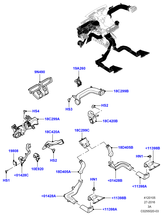 412-01/05D ВОЗД.ДЕФЛЕКТ., ЖАЛЮЗИ И ВОЗДУХОВОДЫ, ВНУТРЕННИЕ ЭЛЕМЕНТЫ (LHD, ДИСПЛЕЙ НАД ГОЛОВОЙ, СБОРОЧНЫЙ ЗАВОД ХЭЙЛВУД)