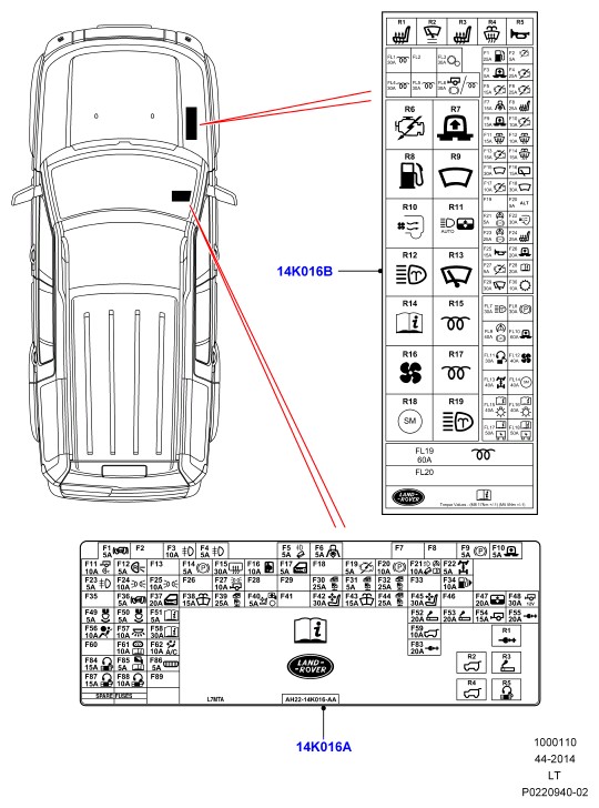 - Label - fuse identification расположен на панели предохранителей под капотом