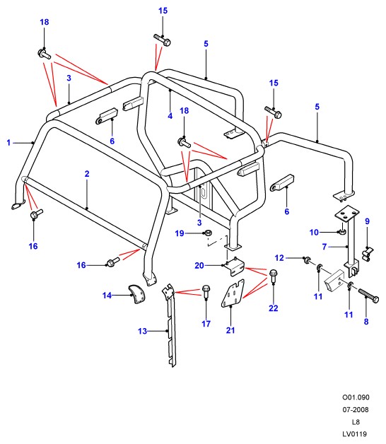 - Балка опрокидывания, левая сторона