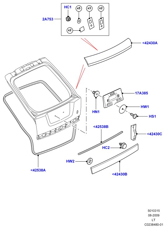 - Комплект крепежных элементов рукоятка поднимаемой задней двери пеноматериал