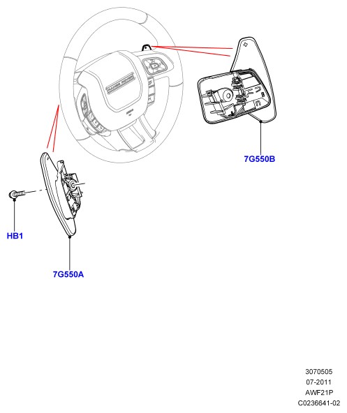 - Подрулевой переключатель, правая сторона, переключение на повышенную передачу; l538 range rover evoque