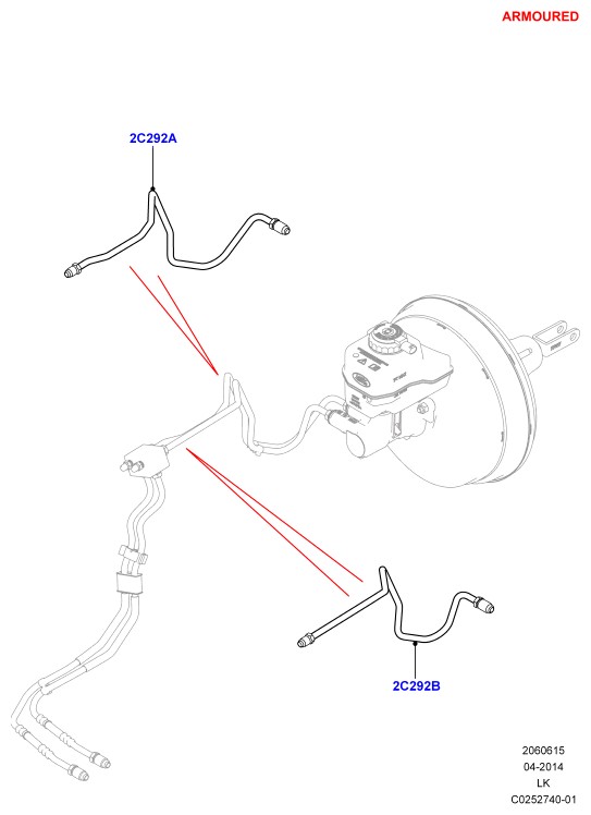 - Тормозной трубопровод главный цилиндр вторичного контура; левый руль
