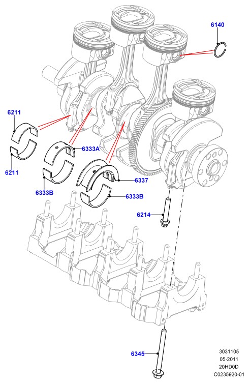 КОЛЕНЧАТЫЙ ВАЛ/ПОРШНИ И ПОДШИПНИКИ 2.0 16 КЛАП., ТУРБОНАДДУВ, БЕНЗИН
